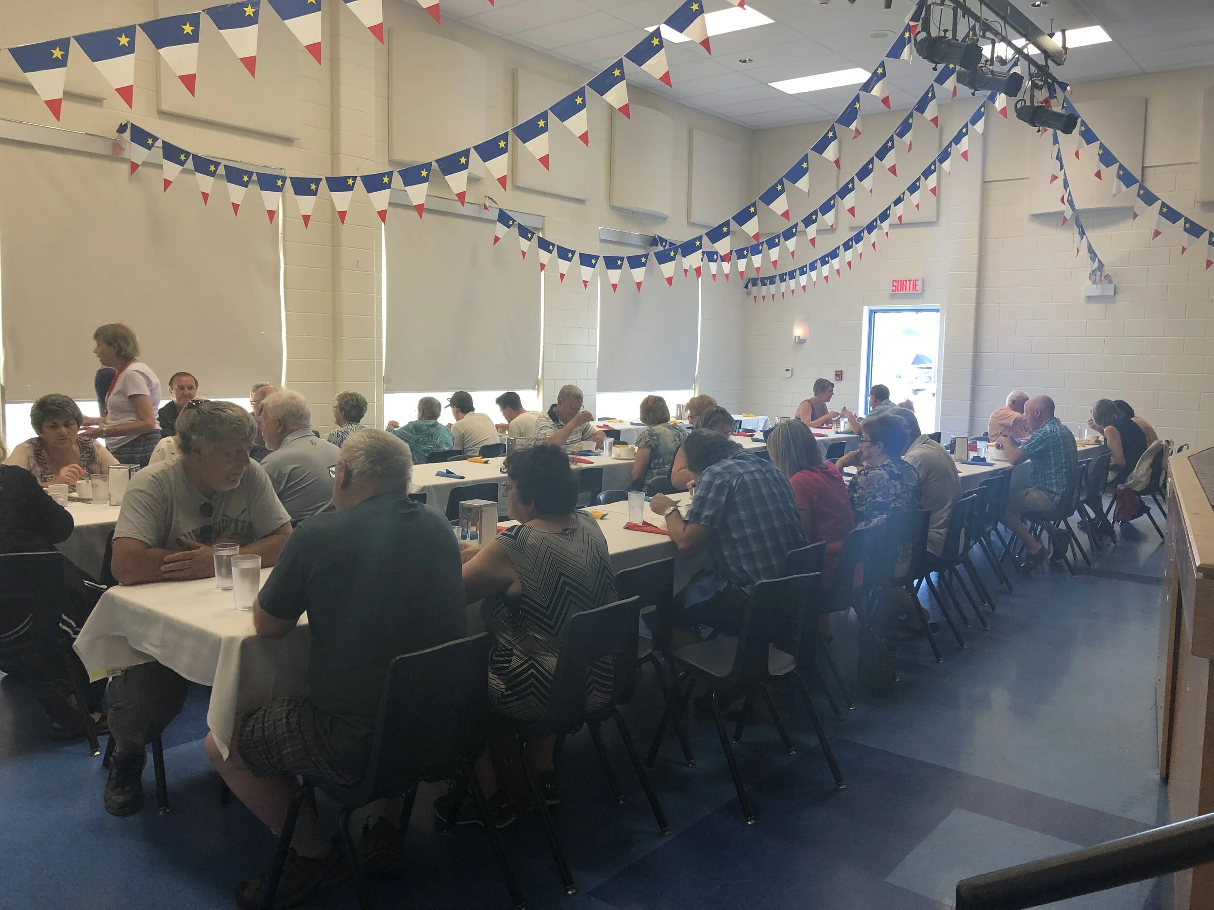 Qui dit traditions dit bien évidemment “souper acdien”. Au menu, pâté à la viande, fricot, salade de chou et crème glacée et fraises.